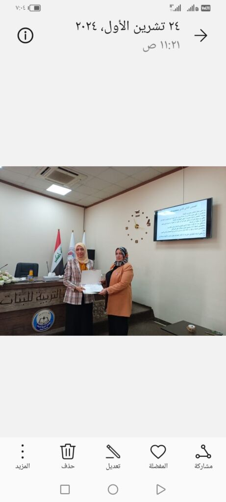 في كلية التربية للبنات قسم اللغه العربية في يوم