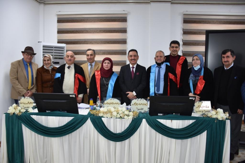 تألفت لجنة المناقشة من الأستاذ الدكتور رياض عبداللطيف العبيدي (رئيساً)، والأستاذ المساعد الدكتور ربيع محمد الدبوني (عضواً)، والأستاذ المساعد الدكتور أوس حازم النعمان (عضواً)، والأستاذ المساعد الدكتورة ندى علي أحمد (عضواً ومشرفاً).
