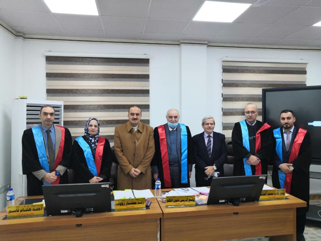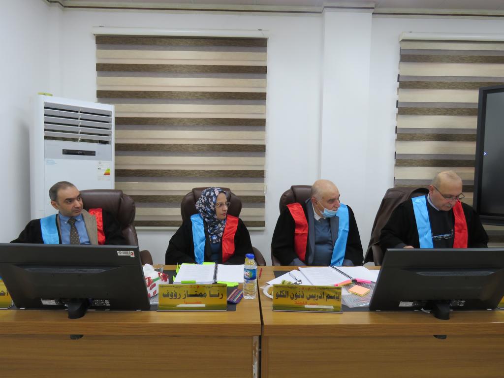 تألفت لجنة المناقشة من الاستاذ المساعد الدكتور باسم ادريس الكلو (رئيساً)، والاستاذ المساعد الدكتور عمار غانم الحائك (عضواً)، والمدرس الدكتورة رنا ممتاز رؤوف (عضواً)، والمدرس الدكتور أحمد هشام قاسم (عضواً ومشرفاً).