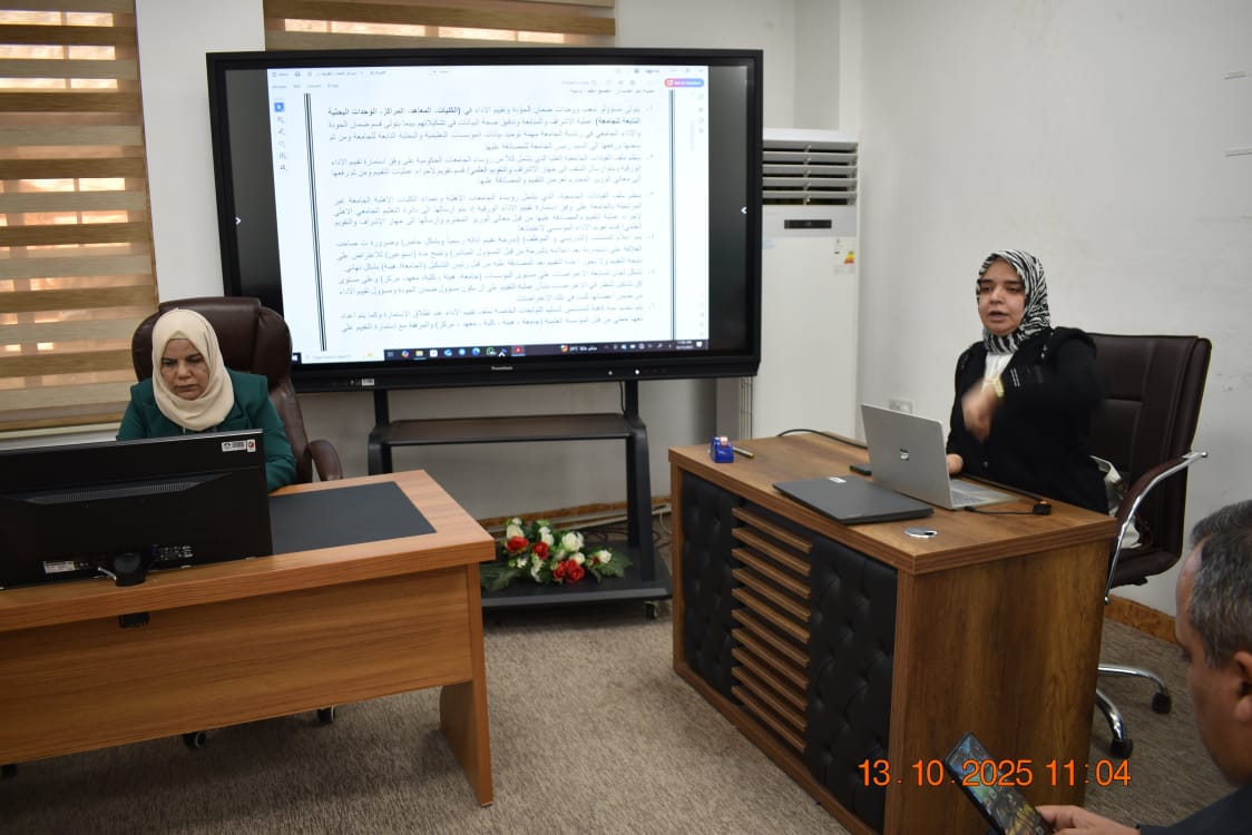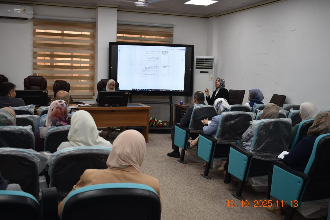 ورشة بـــعنوان : ” ضوابط الملفات التقويمية للعام الدراسي 2024-2025 ” بحضور السيد معاون العميد للشؤون العلمية م.د. أحمد عبدالله أحمد بالإضافة الى اعضاء الارتباط وعدد من التدريسيين والعاملين في فروع وشعب ووحدات الكلية.