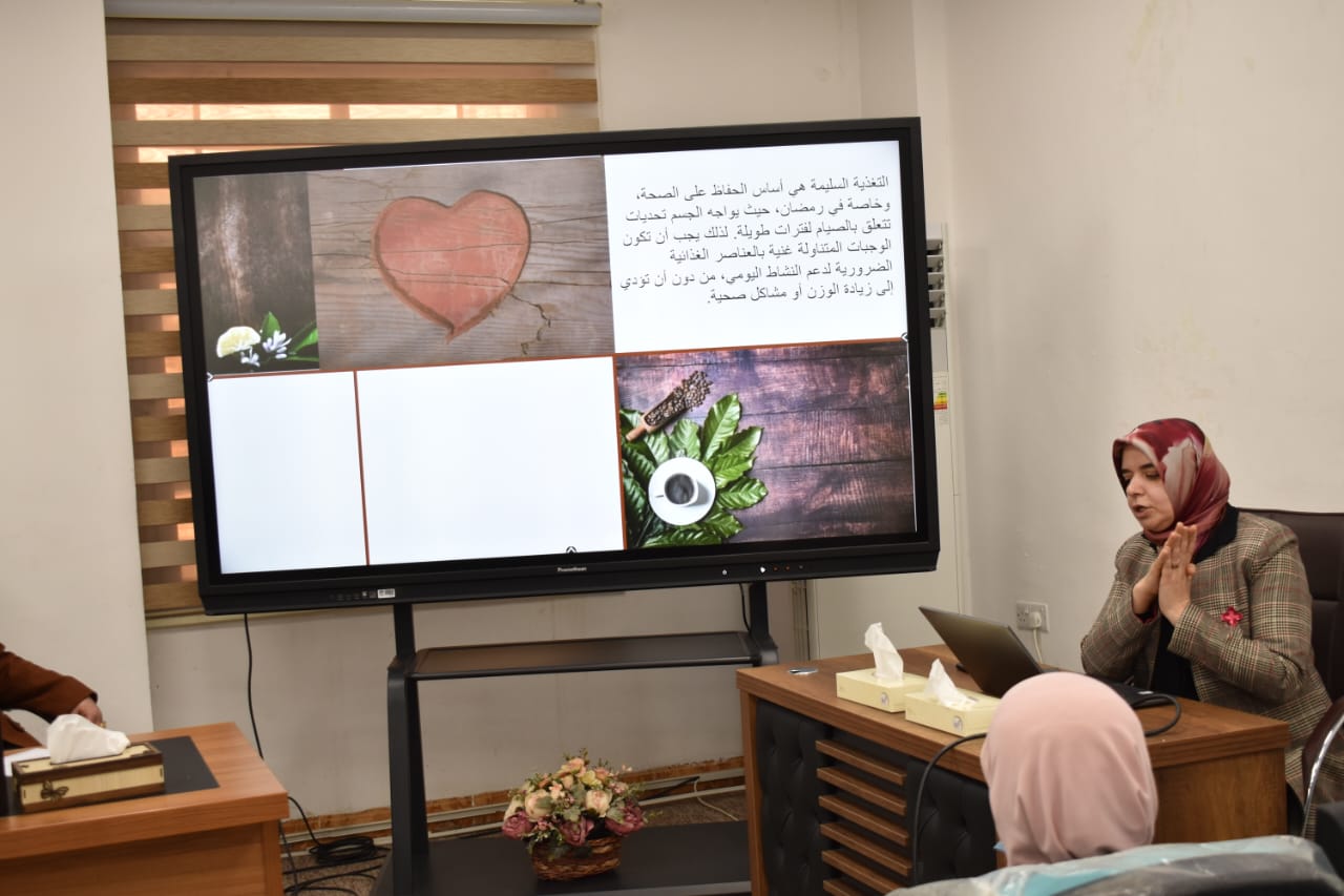 وتنفيذاً للخطة الوطنية الثالثة للمرأة والامن والسلام / اقامت لجنة شؤون المرأة في كلية الطب وبالتعاون مع وحدة شؤون المرأة في رئاسة جامعة الموصل ورشة متخصصة عن الصحة النسوية بعنوان:( الصحة النسوية والتغذية السليمة ، نصائح غذائية فيما يخص داء السكري في رمضان)