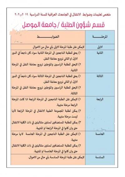 وزارة التعليم العالي والبحث العلمي تعلن عن ضوابط انتقال واستضافة طلبة الدراستين الصباحية والمسائية للسنة الدراسية 2019-2020