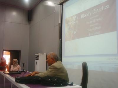 عقد فرع الطب الباطني في يوم الاربعاء 2013/4/24 مقابسة علمية لطلبة الصف السادس الساعة 12 ظهرا في قاعة الرازي في كلية الطب وبحضور طلبة الصف السادس واساتذة فرع الطب وبعض من اساتذة الفروع الاخرىتضمنت الجلسة تقديم ومناقشة ثلاثة حالات مرضية للمرضى الراقدين في الردهات الباطنية في مستشفى ابن سينا التعليمي وعلى النحو التاليالحالة الاولى: مرضى التهاب القولون التقرحيتقديم الطلبةتبارك مازن، رنا اسماعيل، الاء عوني، مصطفى صالحوباشراف الدكتور اسماعيل داؤد سعيدالحالة الثانية : سرطان المعدةتقديم الطلبةمهيمن سالم، علي نزار،علي هاشم، حسان قصيوباشراف الدكتور ضياء جبر الليلةالحالة الثالثة: تورم الساق الايسرتقديم الطلبةسيف نشوان مؤيد، سيف سعد، عبد الجبار منذر، محمد صالحوباشراف الدكتور عبد الحق عامروقد جرت مناقشة مستفيضة حول المواضيع اعلاه