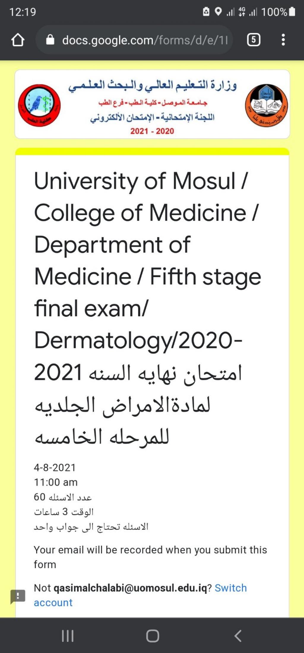انقضاء الأسبوع الثاني للامتحانات النهائية الحضورية والإلكترونية لكلية الطب جامعة الموصل بنجاح للعام الدراسي 2020 – 2021