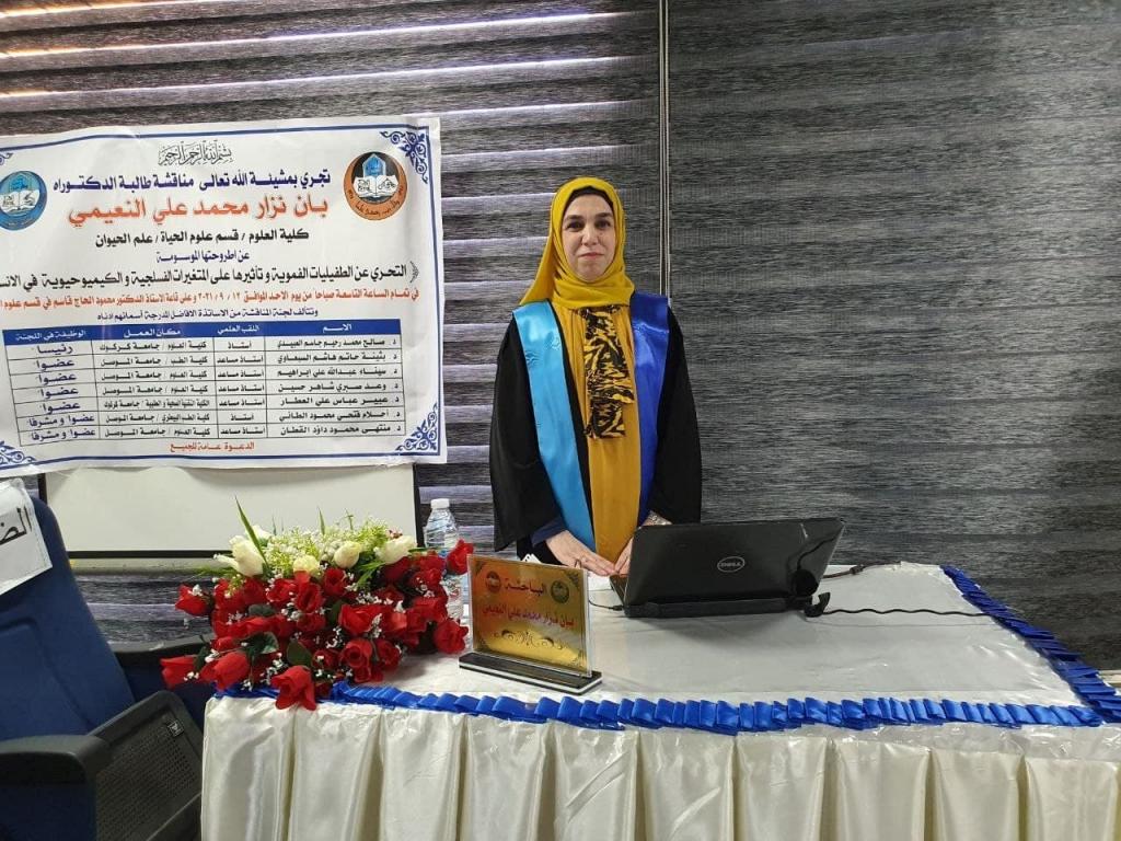 تدريسية فرع التشريح كلية الطب جامعة الموصل ضمن لجنة مناقشة أطروحة دكتوراه في كلية العلوم جامعة الموصل