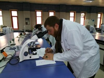 تأبى كلية الطب إلا أن تبقى رصينةً محافظةً على ألقها وَوَهَجها رغم كل التحديات والظروف القاسية. فهذه الكلية التي تعود جذور تأسيسها إلى عام 1959، لاترضى لنفسها إلا أن تكون قِمة في العلم والاداء والعطاء. فالمستوي العِلمي والعَمَلي لطالب كلية طب الموصل خط أحمر لا يمكن المساس به البتة. وعلى هذا النسق، فَقَد أجرى فرع الاحياء المجهرية في كلية طب الموصل في مستهل الاسبوع الماضي الامتحانات العملية للمرحلة الثالثة لنصف السنة للعام الدراسي 2017 ـــ 2018 لمادتي الجراثيم والطفيليات الطبية. وقال الدكتور فراس محمد داود الطائي رئيس الفرع: "إنه قد تم اجراء هذا الامتحان بنظام spots exam. علماً أنَّ هذا النظام من الامتحانات spots exam هو بعينه الذي كان يستخدم سابقاً قبل عام 2014. وأردف الدكتور الطائي قائلاً: "هذا، وقد جرى الامتحان بكل سلاسة وانتظام ومن دون أي عوائق أو سلبيات".