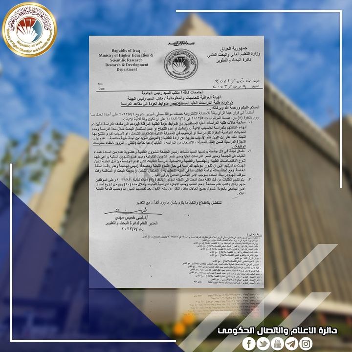https://youtu.be/s6Xes98-Grg *دائرة الإعلام والاتصال الحكومي* *وزارة التعليم العالي والبحث العلمي* *15 آيار 2023*