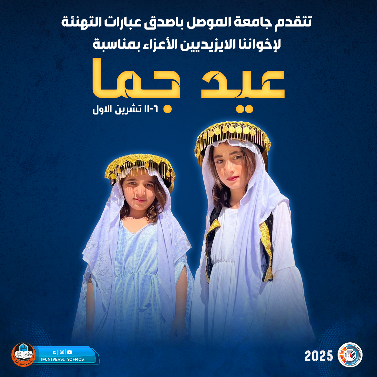 تتقدّم رئاسة جامعة الموصل بأسمى آيات التهاني والتبريكات إلى إخوتنا من أبناء المكوّن الإيزيدي في العراق وكوردستان والعالم أجمع، بمناسبة حلول عيد الجماعية (جهما) الذي [إقرأ المزيد]