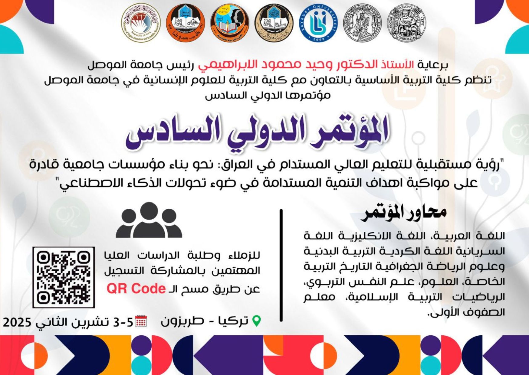 برعاية الأستاذ الدكتور وحيد محمود الإبراهيمي رئيس جامعة الموصل، تنظم كلية التربية الأساسية بالتعاون مع كلية التربية للعلوم الإنسانية مؤتمرها الدولي السادس، تحت شعار: “رؤية [إقرأ المزيد]