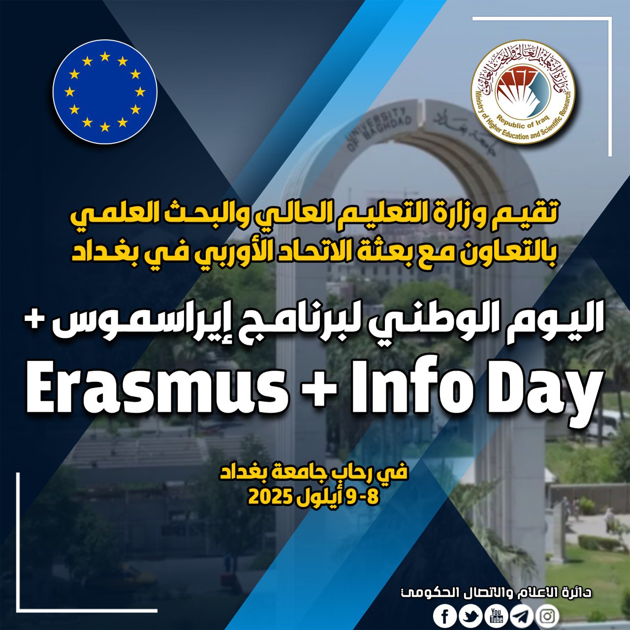 تنظم وزارة التعليم العالي والبحث العلمي بالتعاون مع بعثة الاتحاد الأوربي في بغداد، فعاليات اليوم الوطني لبرنامج (+Erasmus) وذلك في رحاب جامعة بغداد للمدة من [إقرأ المزيد]