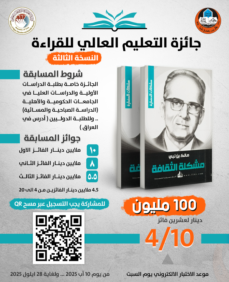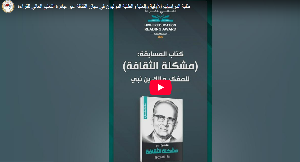 تحفيزًا للطلبة وتعزيزًا لدور القراءة بوصفها غذاءً للعقول ورافدًا للثراء الثقافي، أطلقت وزارة التعليم العالي والبحث العلمي جائزتها للقراءة بنسختها الثالثة. ودعا معالي الوزير، الدكتور [إقرأ المزيد]
