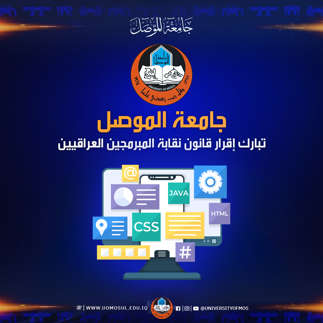 تتقدم جامعة الموصل متمثلة بالأستاذ الدكتور وحيد محمود الإبراهيمي وجميع منتسبيها من أساتذة وموظفين بأسمى آيات التهنئة والتبريك بمناسبة تشريع قانون نقابة المبرمجين العراقيين. إن [إقرأ المزيد]