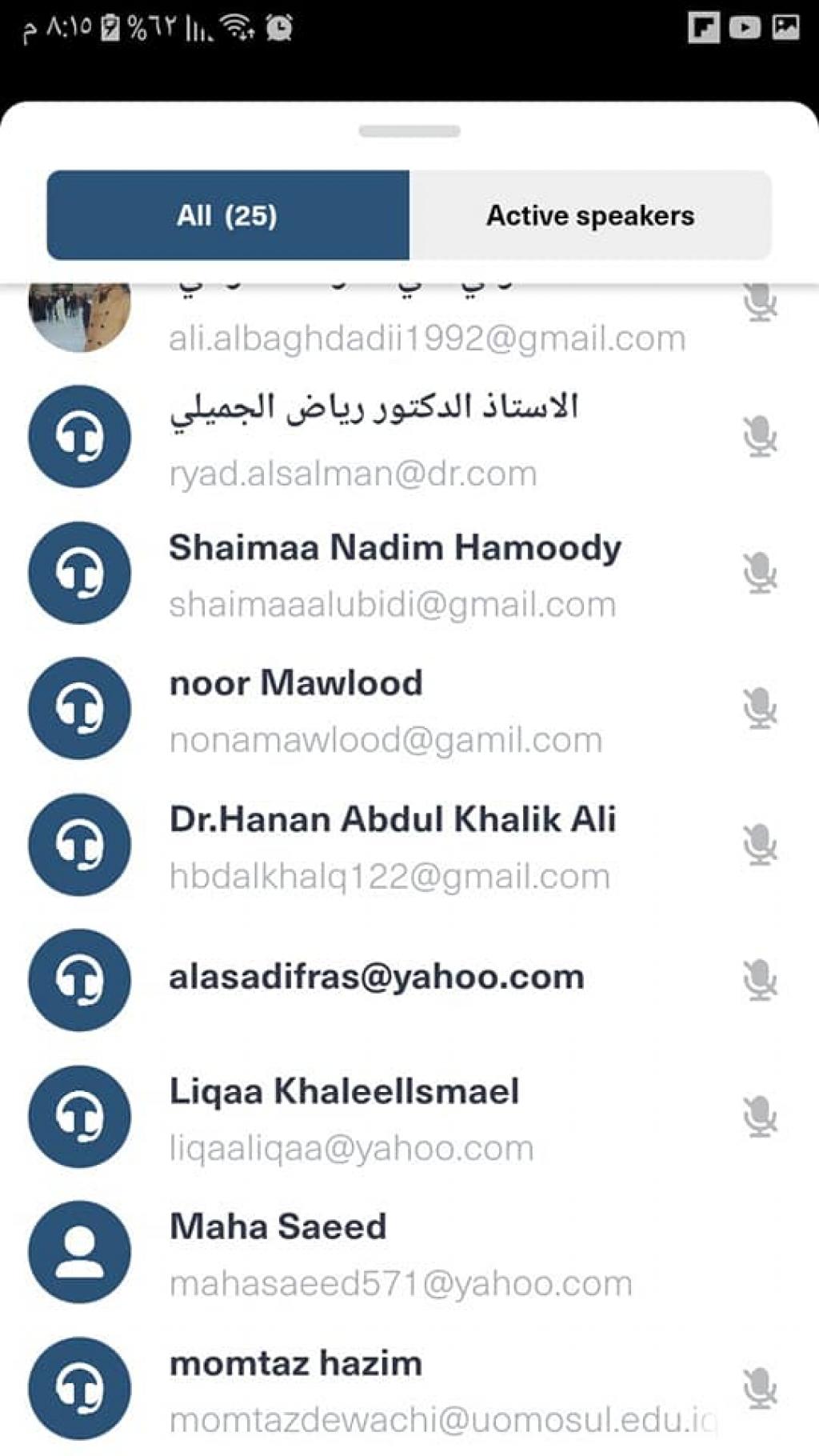 وقد حضر الورشة الثقافية عدد من اساتذة جامعة الموصل وغيرهم من اساتذة الجامعات العراقية ونخبة من أساتذة الآثار والفنون والخطاطين في مدينة الموصل .