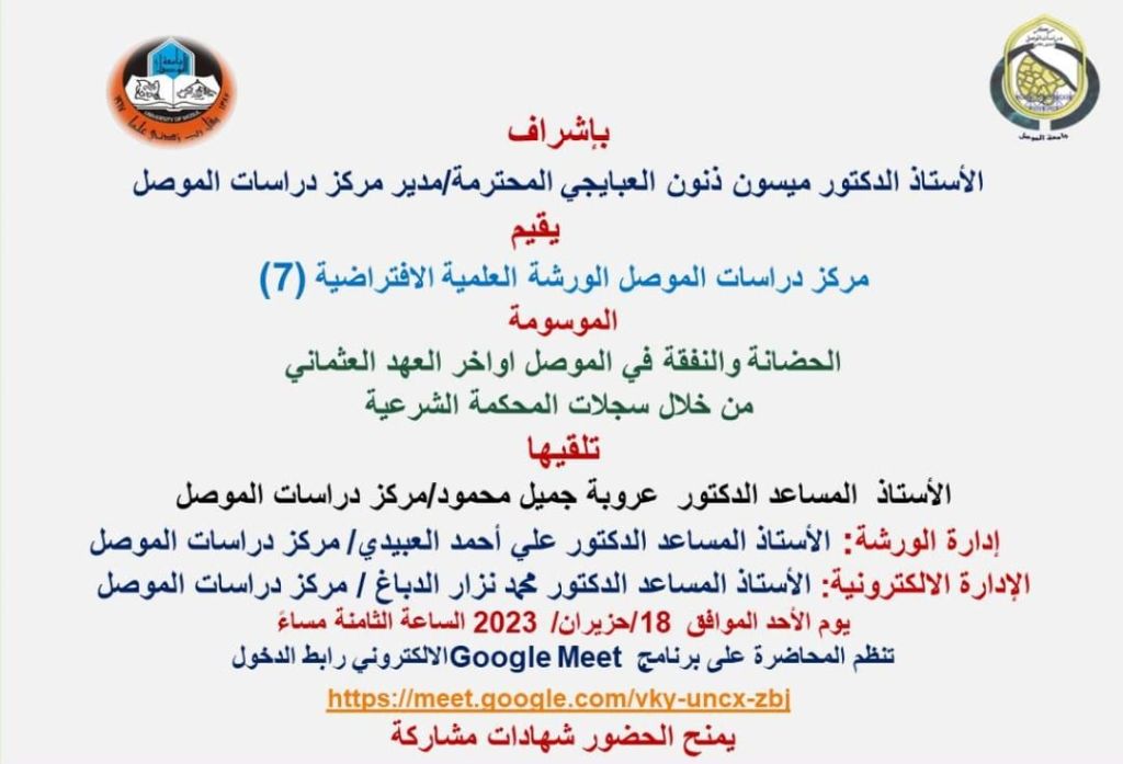 ادناه شهادات المشاركة بالورشة العلمية الافتراضية السادسة والتي اقامها مركز دراسات الموصل يوم الثلاثاء الموافق 13 حزيران 2023 والموسومة (تأويل النص التاريخي / نماذج مختارة)