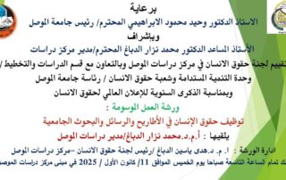 ورشة عمل بعنوان توظيف حقوق الإنسان في الأطاريح والرسائل والبحوث الجامعية