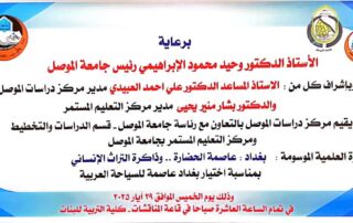 مركز دراسات الموصل يعلن عن اقامة ندوة علمية عن مدينة بغداد بالتعاون مع مركز التعليم المستمر بجامعة الموصل بمناسبة اختيارها عاصمة للسياحة العربية