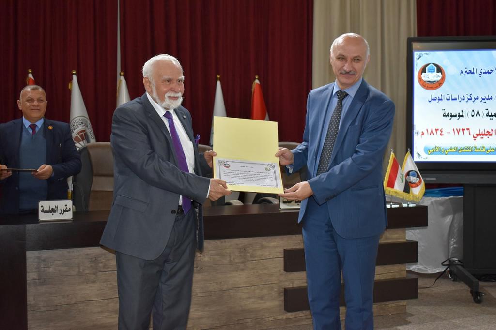 2. يوصي المركز بالدعوة الى عمل نصب تذكاري للأستاذ الدكتور محمود الجليلي بوصفه مؤسسا لجامعة الموصل