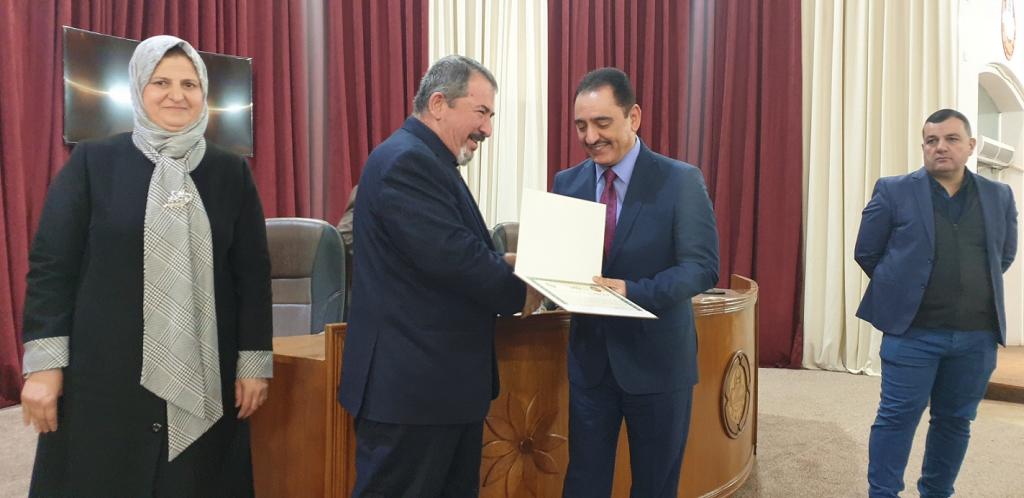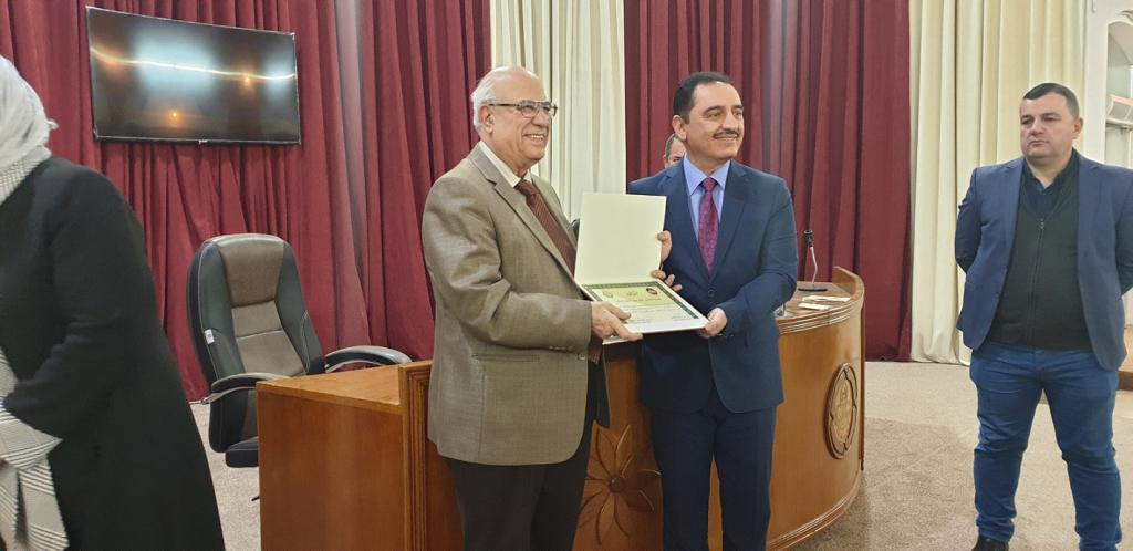 وقام السيد رئيس الجامعة بتوزيع شهادتي شكر وتقدير للاستاذ الدكتور هاشم الملاح والاستاذ الدكتور ناصر عبد الرزاق الملا جاسم