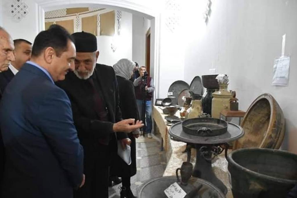 ثم تلاها افتتح السيد رئيس الجامعة معرضاً لبعض مقتنيات متحف التراث الشعبي وقدم الاستاذ طلال صفاوي شرحاً وافياً عن مقتنيات هذا المعرض