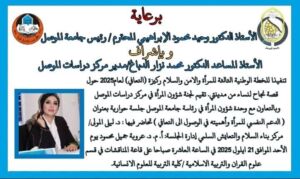وتنفيذا للخطة الوطنية الثالثة للمرأة والامن والسلام ركيزة (التعافي) لعام 2025 حول( قصة نجاح لنساء من مدينتي)، تقيم لجنة شؤون المرأة في مركز دراسات الموصل وبالتعاون مع وحدة شؤون المرأة في رئاسة جامعة الموصل جلسة حوارية بعنوان : –