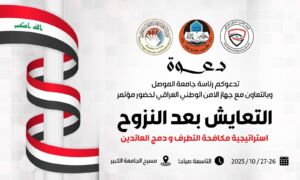 تنفيذاً لتوجيهات رئاسة جامعة الموصل وبتوجيه من السيد رئيس جامعة الموصل الاستاذ الدكتور وحيد محمود الابراهيمي وبإشراف مدير مركز دراسات الموصل ا. م. د. محمد نزار الدباغ في حث الاساتذة لحضور النشاطات العلمية والثقافية في جامعة الموصل ، حضر كل من ا. م. د. صهيب حازم الغضنفري رئيس قسم الدراسات التاريخية والاجتماعية في المركز رفقة ا. م. د. هدى ياسين يوسف رئيس لجنة حقوق الانسان في المركز بالنيابة عن مدير مركز دراسات الموصل جانبا من فعاليات اليوم الاول للمؤتمر الموسوم : التعايش بعد النزوح-استراتيجية مكافحة التطرف ودمج العائدين الذي اقامته جامعة الموصل بالتعاون مع جهاز الامن الوطني العراقي وذلك يوم الاحد الموافق ٢٦ تشرين الثاني٢٠٢٥ في مسرح الجامعة الكبير.