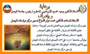 يومي الاثنين والثلاثاء الموافق 22- 23 ايلول 2025 الساعة 10صباحا في مبنى مركز دراسات الموصل.