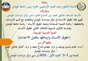 وذلك تمام الساعة العاشرة صباحا للمدة بين 1-3/ كانون الاول / 2025 في مبنى مركز دراسات الموصل.