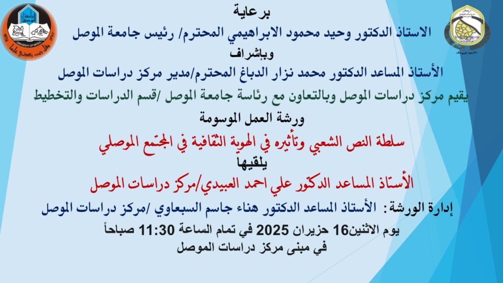 يقيم مركز دراسات الموصل وبالتعاون مع رئاسة جامعة الموصل /قسم الدراسات والتخطيط