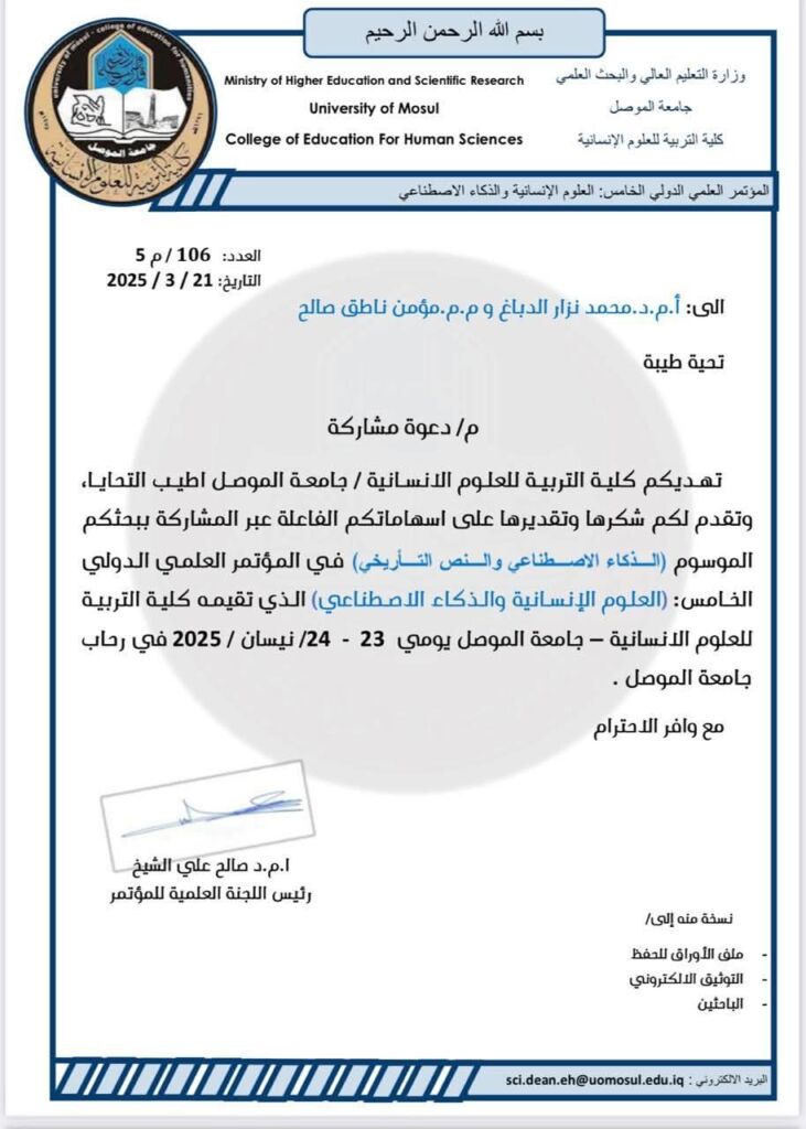 يوم الاربعاء الموافق 26 آذار 2025 في تمام الساعة 11 صباحا في مبنى مركز دراسات الموصل.