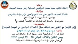 يقيم مركز دراسات الموصل وضمن سلسلة دورات التعليم المستمر دورته العلمية الحضورية الموسومة :