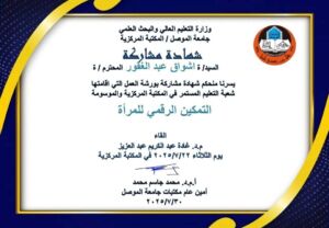 مركز دراسات الموصل يمنح شهادات مشاركة لحضور منتسباته في ورشة التمكين الرقمي للمرأة بالمكتبة المركزية