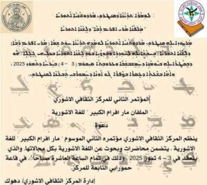 شارك أ . د . عامر عبدالله الجُمَيّلِي ، التدريسي في مركز دراسات الموصل ، بالمؤتمر الثاني للمركز الثقافي الآشوري – دورة الملفان ܡܪܝ ܐܦܪܝܡ ܣܘܪܝܝܐ مار أفرام الكبير – ( 306م – 373م ) ، (القديس أفرام أو أفرام الرهاوي أو أفرام النصيبيني)ببحثه الموسوم( الآثار اللغوية الآشورية في أمثال الموصل العامية)وذلك ضمن اعمال اليوم الاول للمؤتمر – الجلسة الاولى وضم هذا المؤتمر مداخلات بحثية مهمة ومتنوعة تناولت جوانب مهمة من اللغة الاشورية.