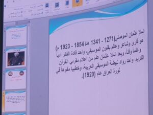 وإشراف الأستاذ المساعد الدكتور علي احمد العبيدي مدير مركز دراسات الموصل المحترم وحضور الكادر التدريسي وأعضاء لجنة التنمية المستدامة في المركز ، شارك مركز دراسات الموصل في فعاليات اليوم الثاني للمهرجان السنوي الثالث للتنمية المستدامة للعام 2025 والمتعلق بالمشاريع المميزة لمراكز البحوث العلمية والهيئات التابعة للجامعة وغيرها ، وضمن فعاليات الجلسة الأولى التي عقدت في المنتدى العلمي الادبي استمع السيد رئيس جامعة الموصل والحضور الى قصة نجاح : الملا عثمان الموصلي ..في أرقام )والتي قدمها ا.م.د.محمد نزار الدباغ رئيس قسم الدراسات الأدبية والتوثيق عن طريق عرض وتقديم شرح power point من اعداد لجنة التنمية المستدامة في المركز والتي تضم كل من ا.م.د.هناء جاسم محمد – رئيسا- ، وا.م.د.علي احمد العبيدي -عضوا- ، وا.د.عامر عبدالله الجميلي عضوا ، وم.م.مهدي صالح سعيد -عضوا- ، وتنفيذ : الانسة شهد وعدالله ياسين ، لاجل تحقيق أهداف التنمية المستدامة في جامعة الموصل.من أجل تحقيق مشاريع مستدامة ، واستمع السيد رئيس الجامعة اليوم الثلاثاء 22 نيسان 2025 الى قصة نجاح مشروع مركز دراسات الموصل والتي تدخل ضمن الهدف الحادي عشر(مدن ومجتمعات مستدامة) لأهداف الاستدامة وابدى دعمه المستمر لأجل الارتقاء بعمل مركز دراسات الموصل .