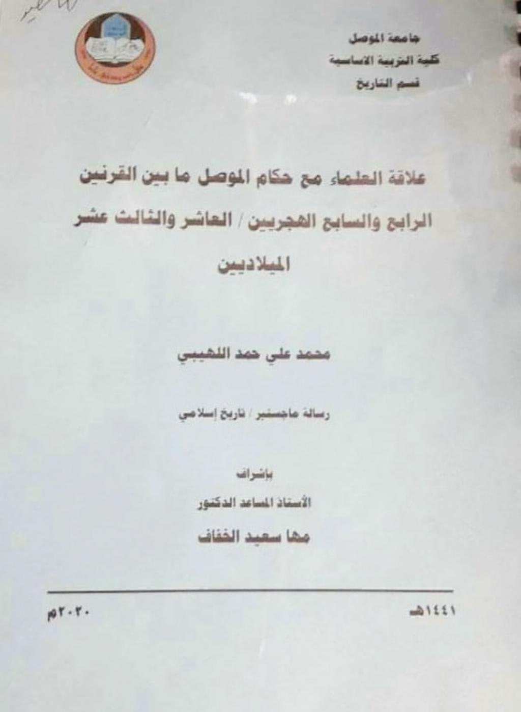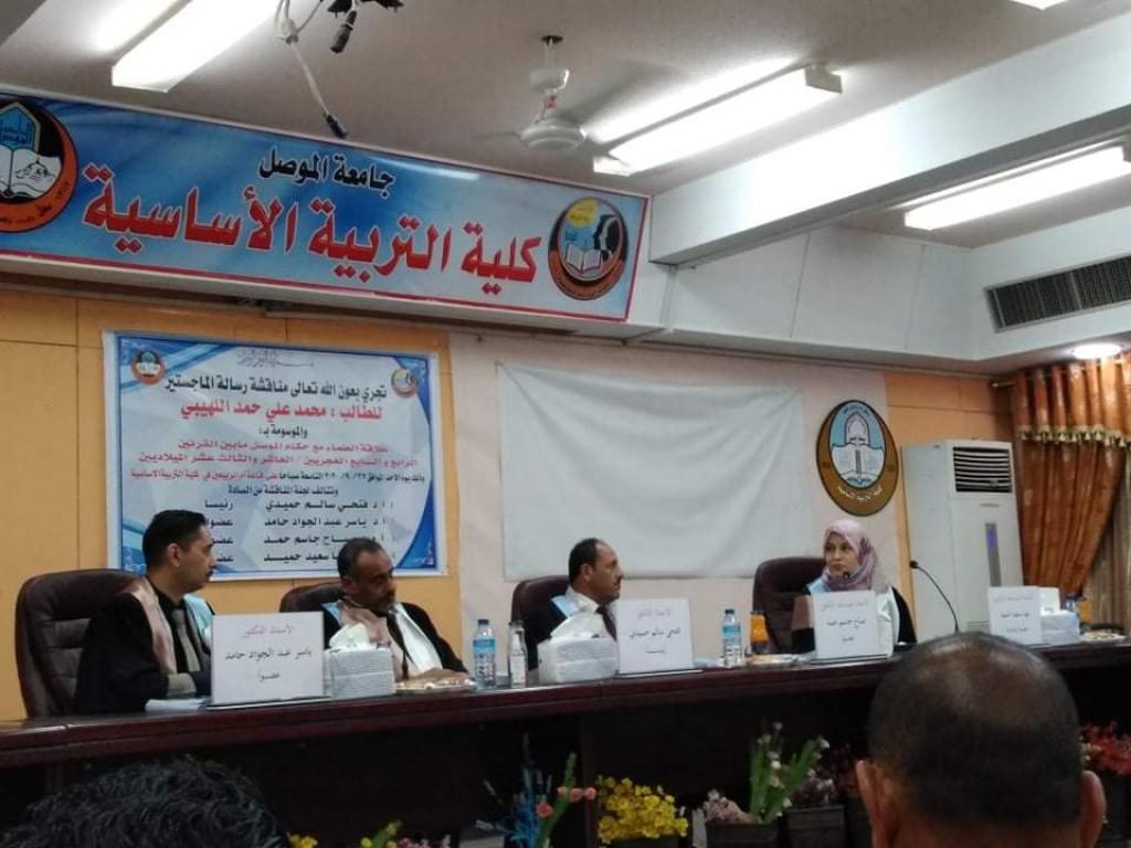 جرت صباح اليوم الاحد الموافق ٢٧أيلول ٢٠٢٠ وعلى قاعة ام الربيعين في كلية التربية الاساسية مناقشة رسالة الماجستير الموسومة (علاقة العلماء مع حكام الموصل ما بين القرنين الرابع والسابع الهجريين/ العاشر والثالث عشر الميلاديين) للطالب محمد علي حمد اللهيبي من قسم التاريخ وبإشراف الأستاذ المساعد الدكتورمها سعيد حميد التدريسية في مركز دراسات الموصل ، حيث تألفت لجنة المناقشة من الاعضاء:ا.د فتحي سالم حميدي رئيسا