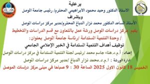 يقيم مركز دراسات الموصل بالتعاون مع قسم الدراسات والتخطيط -وحدة التنمية المستدامة / رئاسة جامعة الموصل