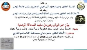 يقيم مركز دراسات الموصل وبمناسبة الذكرى 140 لتأسيس الصحافة الموصلية
