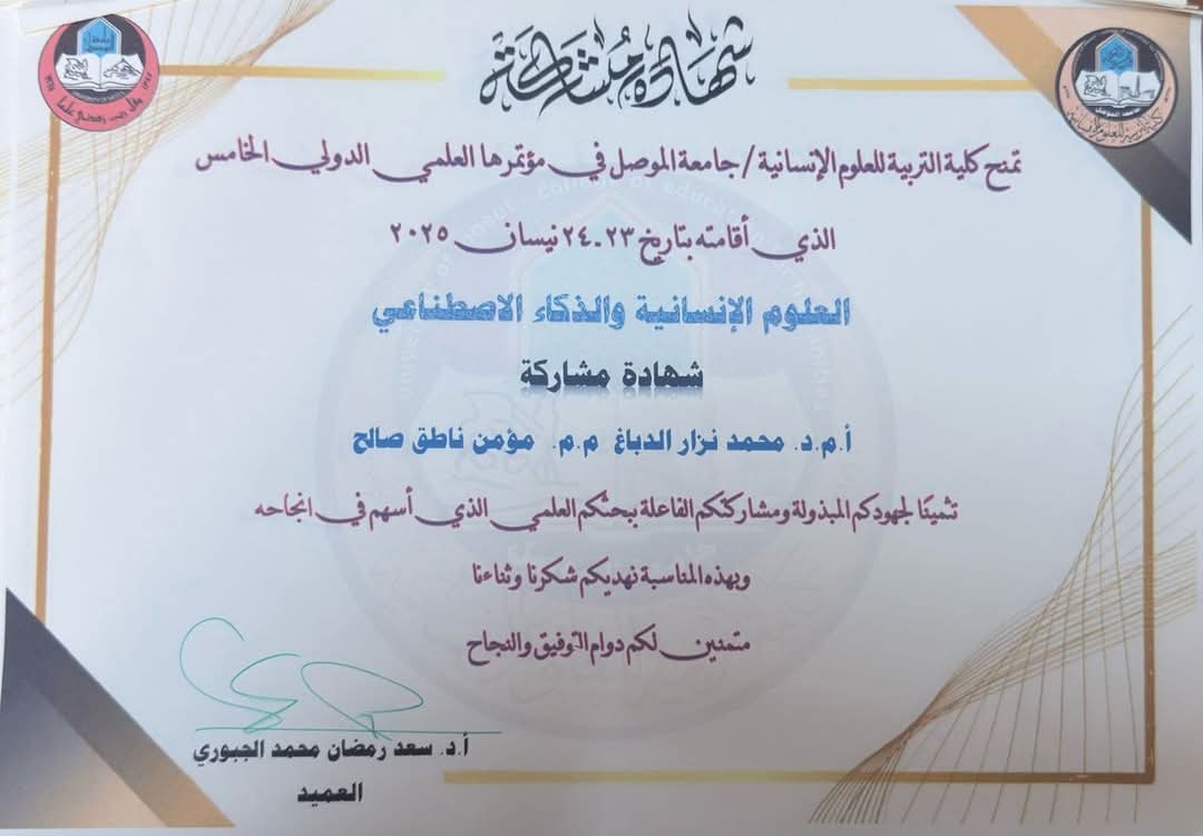 مركز دراسات الموصل يحضر ورشة عمل خاصة بقسم الشوون العلمية/رئاسة جامعة الموصل. ....... برعاية الاستاذ الدكتور وحيد محمود الابراهيمي رئيس جامعة الموصل وبإشراف الاستاذ المساعد الدكتور محمد نزار الدباغ مدير مركز دراسات الموصل وبالتعاون مع قسم الدراسات والتخطيط -وحدة التنمية المستدامة /رئاسة جامعة الموصل وبناء على الاوامر الادارية والاعمامات الواردة من رئاسة جامعة الموصل في حضور المركز لكافة النشاطات الخاصة بقسم الشوون العلمية /رئاسة جامعة الموصل حضر كل من ا.م.د.صهيب حازم الغضنفري رئيس قسم الدراسات التاريخية والاجتماعية في المركز رفقة التدريسي م.د.كمال عاشور خضر بالنيابة عن مدير المركز لورشة العمل الموسومة : تعزيز الكفاءة البحثية في العلوم الانسانية عبر تقنيات الذكاء [إقرأ المزيد]