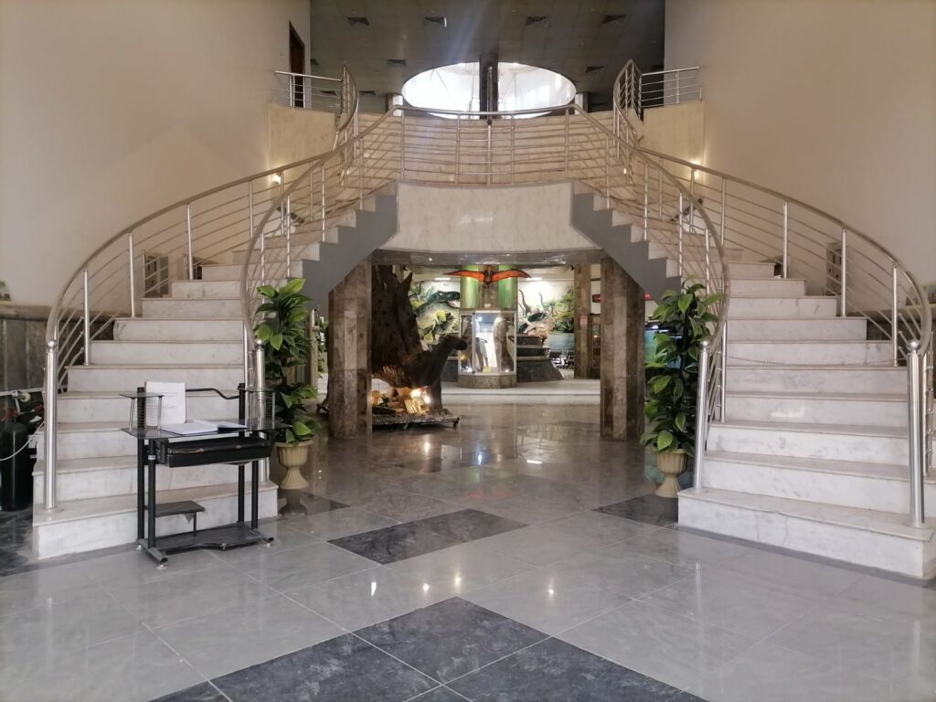 في وقت سابق انتهى العمل في مشروع اعادة تأهيل رأس الديناصور .