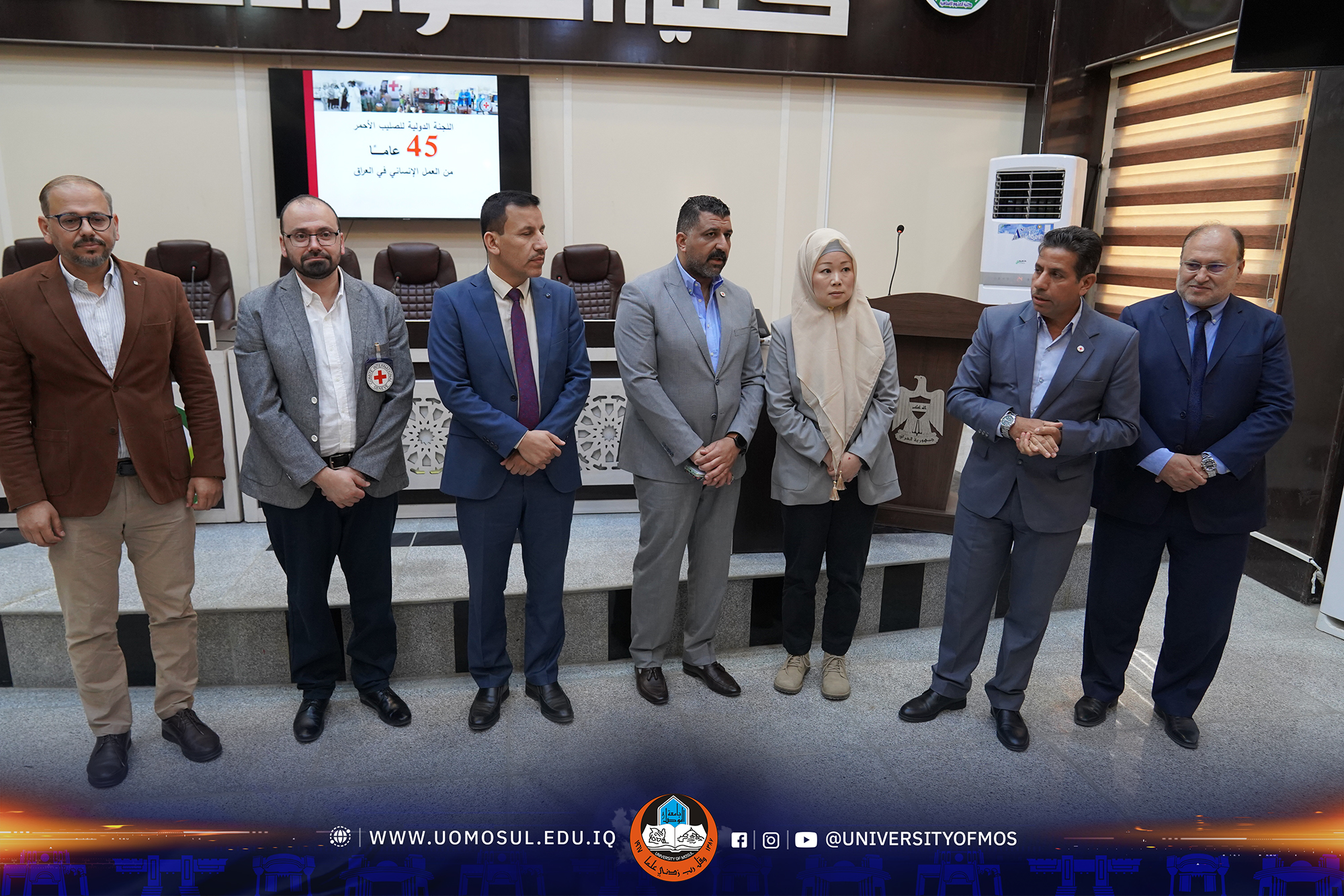بحضور السيدة هيرو يابوساكي رئيس اللجنة الفرعية للصليب الأحمر في الموصل والاستاذ الدكتور طه حماد مخلف عميد الكلية وعدد من الشخصيات المجتمعية والأمنية في المحافظة .