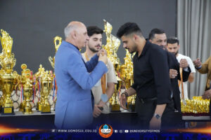 أقام قسم النشاطات الطلابية في جامعة الموصل، اليوم الاثنين 12 أيار 2025، احتفالية لتوزيع الجوائز على الكليات الفائزة بالمراكز الثلاثة الأولى في عدد من الأنشطة الطلابية، والتي شملت الجوانب الرياضية، والكشفية، والفنية، والعمل التطوعي، وذلك بحضور رئيس الجامعة الأستاذ الدكتور وحيد محمود الإبراهيمي، ومساعد رئيس الجامعة للشؤون الإدارية الأستاذ المساعد الدكتورة رفل حسن حامد.