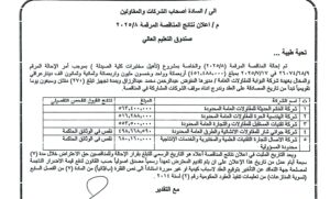 اعلان نتائج المناقصة رقم 8 / 2025