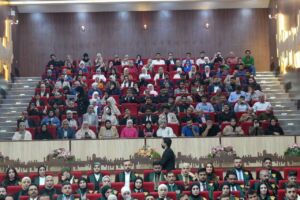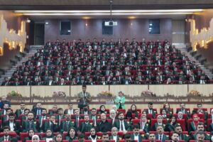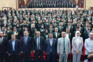 من جانبه، رحّب رئيس جامعة الموصل بالحضور الكرام، مشيراً إلى أن احتضان الجامعة لهذه المراسيم يأتي تجسيداً لدورها المجتمعي في ترسيخ ثقافة القانون وبناء دولة العدالة والمؤسسات، متمنياً للمحامين الجدد مسيرة مهنية زاخرة بالعطاء والنجاح في خدمة العراق.