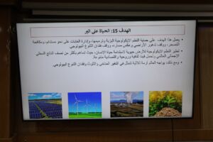 تناولت الورشة التعريف بأهمية هذا الهدف، وطرق الحفاظ على المساحات الخضراء، وإدارة الموارد الطبيعية بصورة علمية صحيحة، إلى جانب مناقشة آليات الحد من الانبعاثات الضارة لتحقيق بيئة نظيفة خالية من التلوث، مع الحفاظ على التنوع الإحيائي.