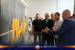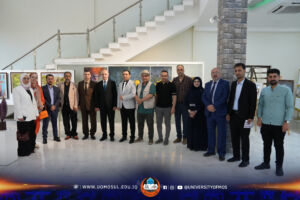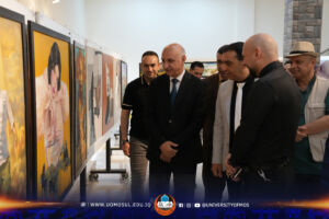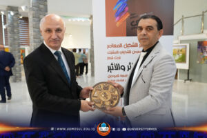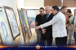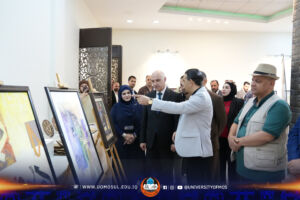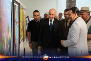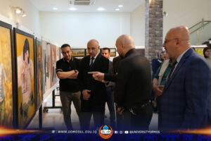 جال الدكتور الإبراهيمي بين جنبات المعرض، مستمعًا إلى شروحات وافية عن تأسيس المختبر، وأهدافه المتمثلة في ترجمة الرؤى الفنية إلى واقع بصري يعمّق الذاكرة الأنثروبولوجية، ويسهم في إعادة تشكيل الهوية البصرية لمدينة الموصل عبر لغة التشكيل المعاصر.