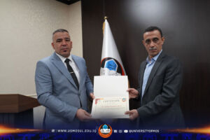 استضاف قسم الشؤون العلمية في رئاسة جامعة الموصل بالتعاون مع شعبة السلامة والأمن الكيمياوي والبايولوجي والإشعاعي CBRN ,وتنفيذا للبرنامج الحكومي ,وفداً وزارياً لإقامة دورة تدريبية وعلى المنصة الالكترونية عن استراتيجية تطوير التعليم العالي والبحث العلمي ,مكافحة المخدرات ،يومي ١٥ ـ ١٦ نيسان ٢٠٢٥ ، فضلاً عن إستضافة ذوي الإختصاص في مجال الكيمياء من الجامعات الحكومية والأهلية للمنطقة الشمالية منها كركوك وصلاح الدين والموصل .