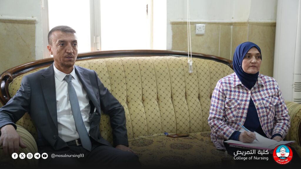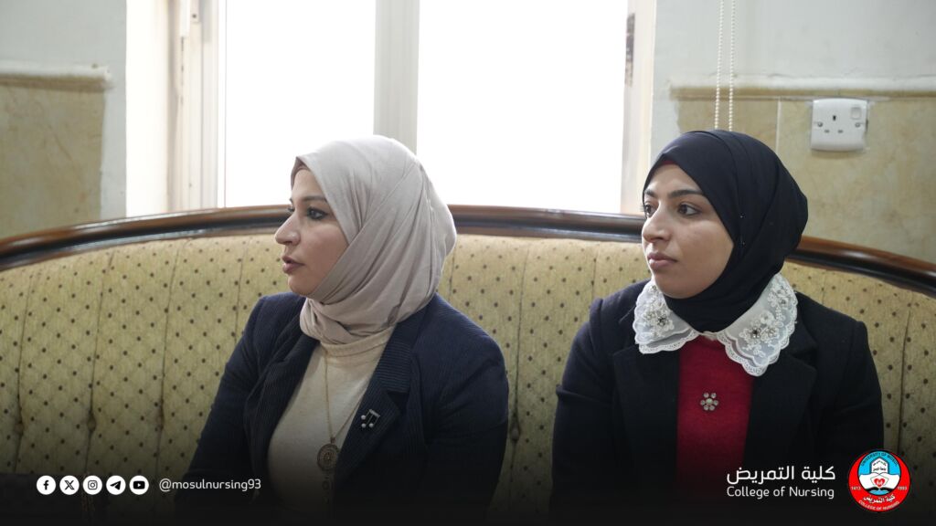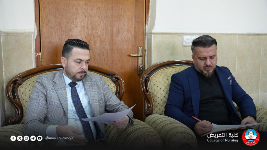 اجتماع اللجنة المختصة في كلية التمريض، لمناقشة ملف تقييم جودة مختبرات الكلية.