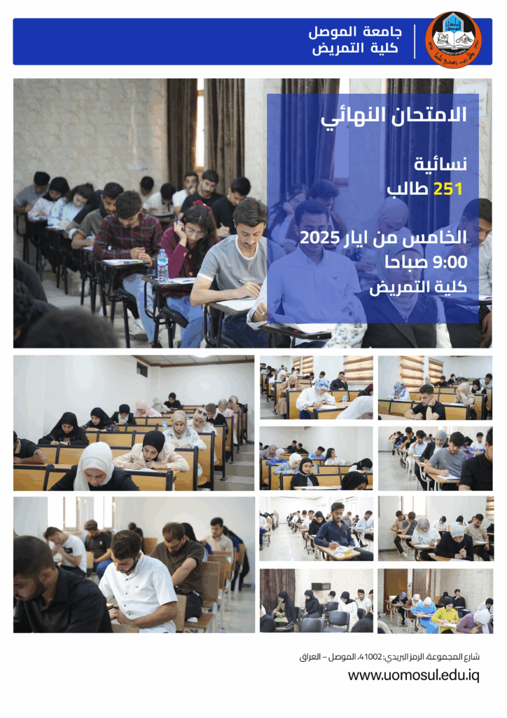 تابع السيد عميد كلية التمريض الأستاذ المساعد الدكتور تحسين محسن حسين، صباح اليوم، سير الامتحان التقويمي