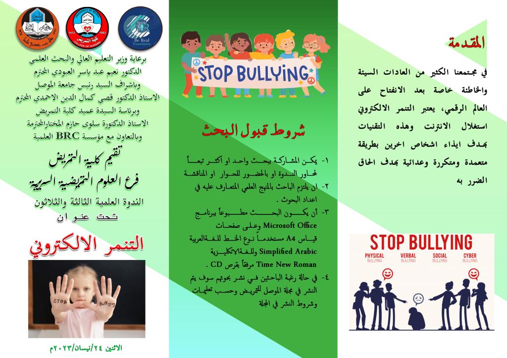 اعلان عن ندوة علمية تحت عنوان ( التنمر الالكتروني )