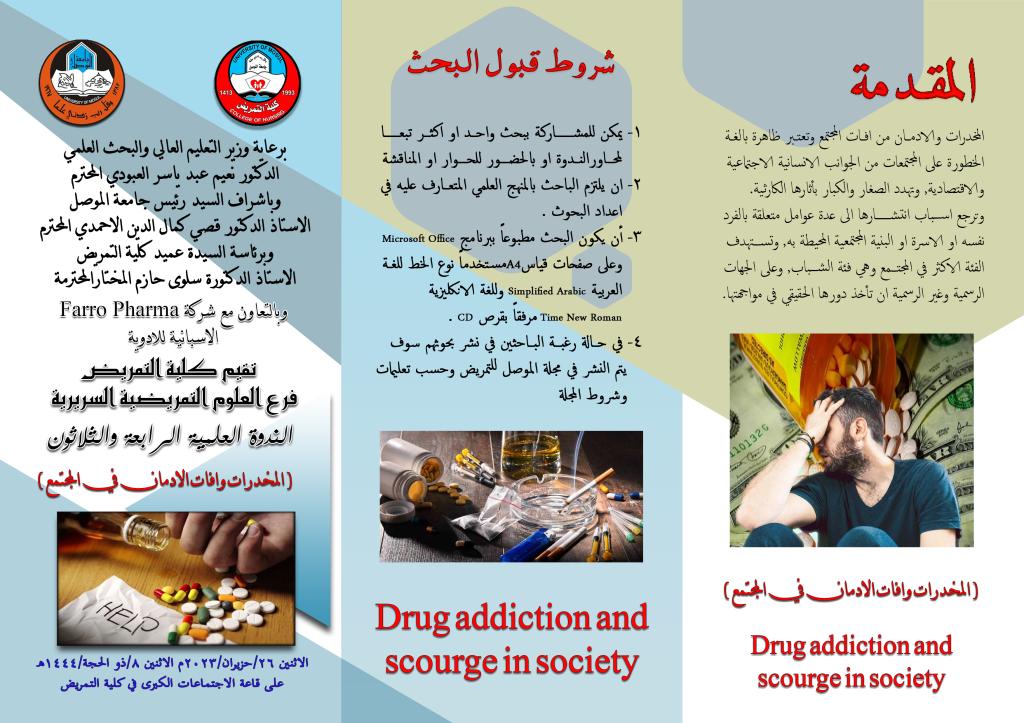 اعلان عن ندوة علمية تحت عنوان ( المخدرات وافات الادمان في المجتمع )