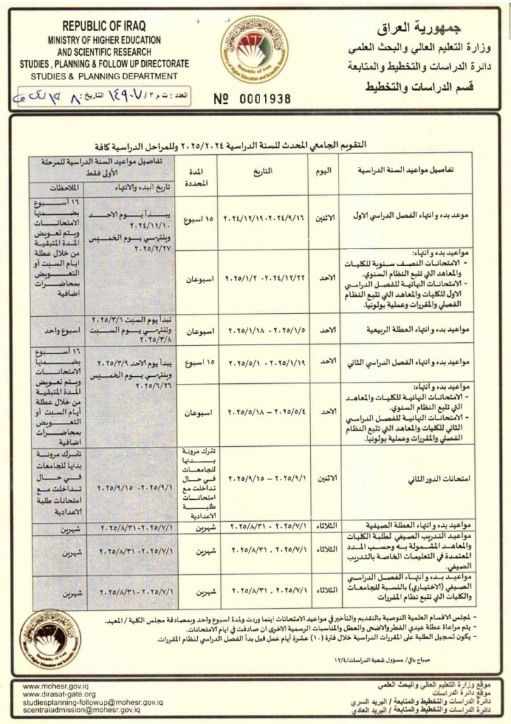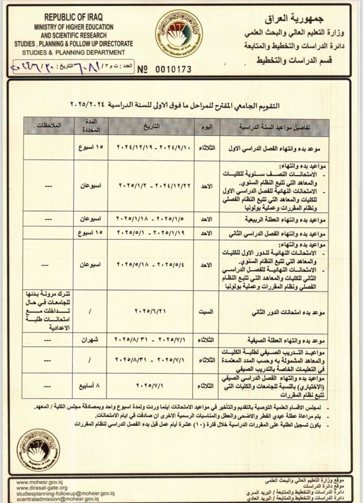 التقويم الجامعي 2024-2025